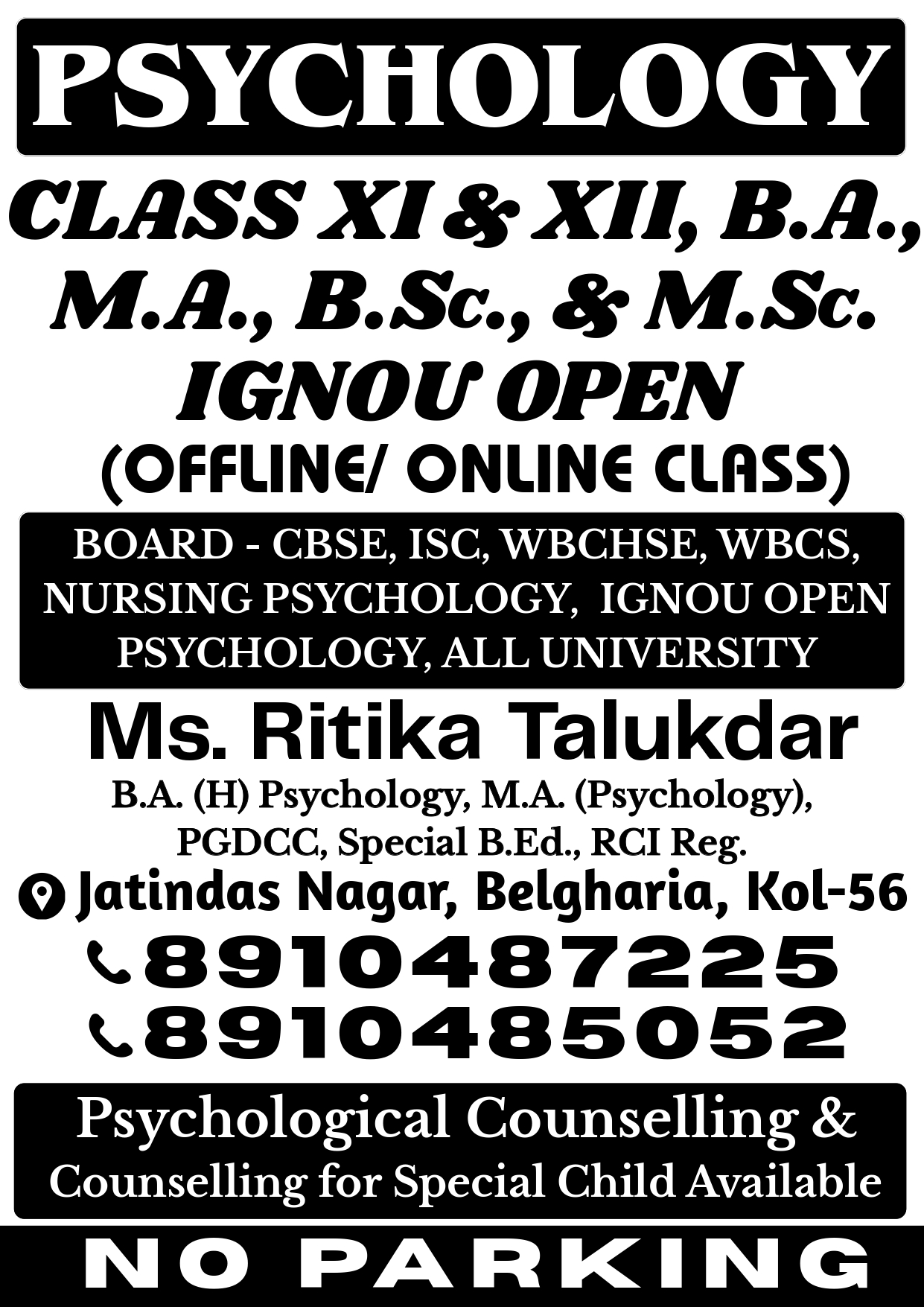Class XI–M.Sc psychology coaching, career & personal counselling